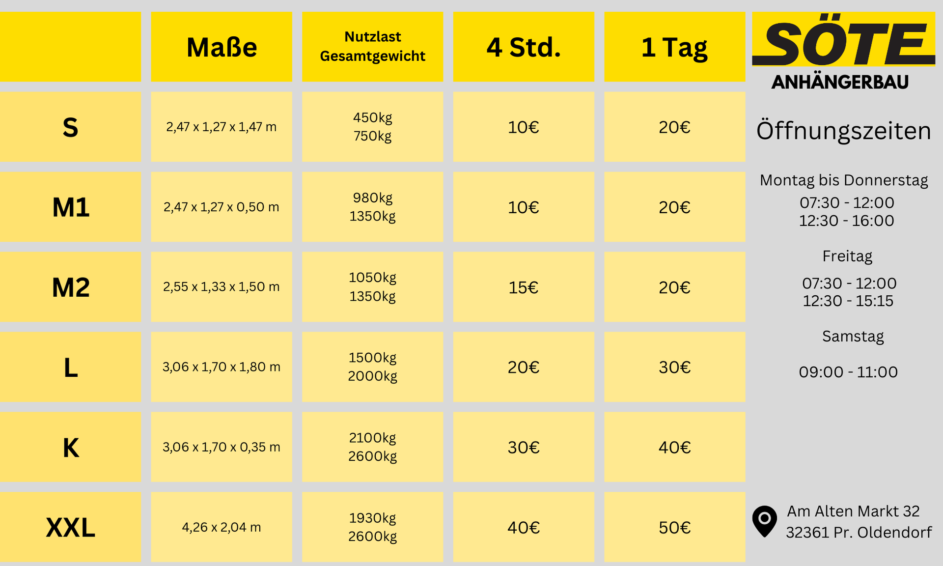 Heute steht Söte Anhängerbau für erstklassige Handwerksarbeit, innovative Lösungen und persönliche Beratung. Unsere Kernkompetenzen liegen in der Herstellung, Sonderanfertigung, dem Verkauf sowie der Reparatur von Pkw-Anhängern aller Art. Ob Standardmodell oder Maßanfertigung – wir realisieren Projekte präzise nach Ihren Anforderungen.